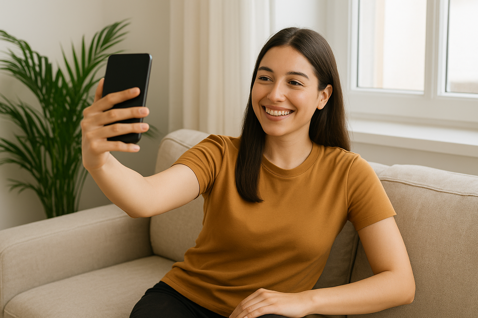 Position your mobile device at eye level. For selfies, hold the phone approximately 16–20 inches (40–60 cm) from your face. When using the rear camera, stand 2–4 feet (1–2 meters) away. Adjust the distance as needed based on your device’s zoom setting to ensure your head and shoulders are properly framed.